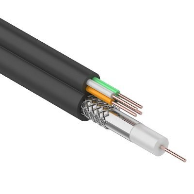 Кабель ККСВ-П+4х0.5 мм состоит из радиочастотного (коаксиального) кабеля и четырех жил питания. Коаксиальный кабель 3с-2v состоит из медного монолитного проводника, вспененного диэлектрика, внешнего проводника из алюминиевых жил в виде оплётки и оболочки из полиэтилена(PE). Жилы питания (медные) монолитные в изоляции из ПВХ и оболочке из полиэтилена(PE). Коаксиальный кабель и жилы питания соединены между собой