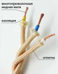 Провод для открытого монтажа в стиле РЕТРО; многопроволочная медная жила, 3х1.5 мм.кв., изоляция – поливинилхлоридный пластикат; оплетка – полиэфирные нити; U-ном.450/750 В; t-раб.-50...+65°С. Цвет чёрный. Соответствует ГОСТ 31947-2012. Бухта 50 м.