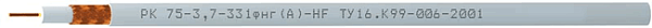 Кабель коаксиальный однопроволочный групповой прокладки, с пониженным дымо- и газовыделением; Внутренний проводник: медь 1х0,80мм; Изоляция: полиэтилен физического вспенивания (диаметр по изоляции 3,70 мм); Внешний проводник:оплетка плотностью 88-92% из медных проволок диаметром 0,12 мм (диаметр по внешнему проводнику 4,35 мм); Оболочка: полимерная композиция, не содержащая галогенов D=6,3мм.; - 60°..+85°С.