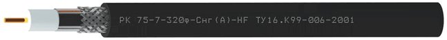 Кабель коаксиальный однопроволочный групповой прокладки, с пониженным дымо- и газовыделением; Внутренний проводник: медь 1х1,58мм; Изоляция: полиэтилен физического вспенивания (диаметр по изоляции 7,25 мм); Внешний проводник: оплетка плотностью 55-60% из медных луженых проволок диаметром 0,15 мм, наложенная поверх ламинированной алюминиевой фольги (диаметр по внешнему проводнику 8,10 мм); Оболочка: полимерная композиция, не содержащая галогенов D=10,6мм.; - 60°..+85°С.; Цвет: черный