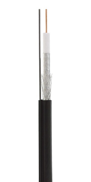 Кабель коаксиальный радиочастотный с тросом волновое сопротивление 75 Ом, со вспененной полиэтиленовой изоляцией в полиэтилен (PE) оболочке. Внутренний проводник стальная проволока плакированная медью ; Диаметр внутреннего проводника 1,63 мм; Диаметр по внутреннему диэлектрику 7,11 мм; Диэлектрик, физически вспененный полиэтилен; Экран в виде сплошной алюминиевой фольги; Внешний проводник из алюминиевой проволоки в виде оплётки; Диаметр проволоки экрана 0,12 мм; Плотность оплетки 47%; Наружный диаметр 10,16±0,03 мм, трос 1.83 мм; –40°...+60°C; Для внешней прокладки; Бухта 305 метров