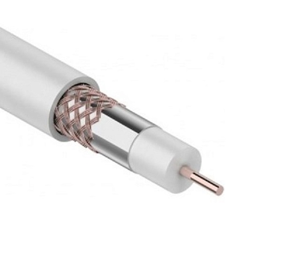 Коаксиальный кабель. Волновое сопротивление 75 ± 5 Ом с внутренним однопроволочным медным проводником D 1х1,63 мм. Внешний проводник (экран). алюминиевая фольга и оплетка медной луженой проволокой 60% . Оболочка из ПВХ пластиката (для внутренней прокладки), наружный диаметр кабеля 10,1 мм