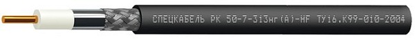 Кабель коаксиальный радиочастотный для систем телерадиовещания, спутниковой и радиосвязи, групповой прокладки, с пониженным дымо- и газовыделением; внутренний проводник: медный однопроволочный диаметром 2,74 мм; Наружный размер кабелей, DH, не более 10,3 мм; Изоляция: полиэтилен физического вспенивания (диаметр по изоляции 7,25 мм); Внешний проводник: оплетка плотностью 88–92 % из медных луженых проволок диаметром 0,12 или 0,15 мм, наложенная поверх ламинированной алюминиевой фольги (диаметр по внешнему проводнику 8,0 мм); t-раб.–60...+85°С; Оболочка: полимерная композиция, не содержащая галогенов; Цвет: черный