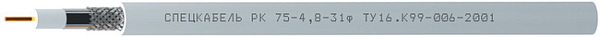 Кабель коаксиальный однопроволочный; Внутренний проводник: медь 1х1,1мм; Изоляция: полиэтилен физического вспенивания (диаметр по изоляции 4,8 мм); Внешний проводник: оплётка плотностью 55-60% из медных луженых проволок диаметром 0,15 мм, наложенная поверх ламинированной алюминиевой фольги(диаметр по внешнему проводнику 5,80 мм); Оболочка: ПВХ D=6,9мм.; - 40°..+70°С. ; Цвет: серый
