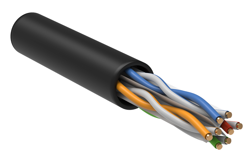 Кабель витая пара U/UTP, кат. 6, 4х2х0.57 мм, 24AWG, внешний, одножильный, LDPE, внешний диаметр кабеля 6.5 мм, -60°C ...+60°C, черный, 305м.