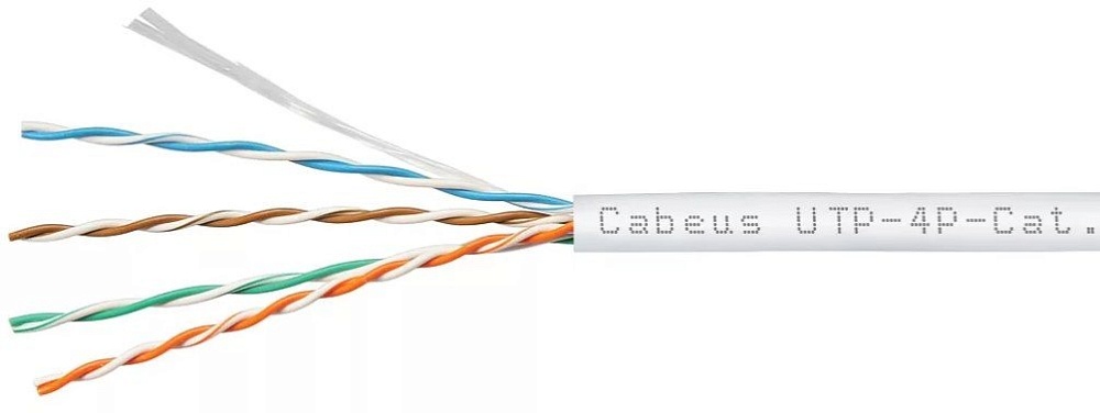 Кабель витая пара U/UTP, категория 5e, 4х2х0.50; внутренний; одножильный, LSZH, нг(А)-HF, -20°C ...+60°C, серый, 305м.