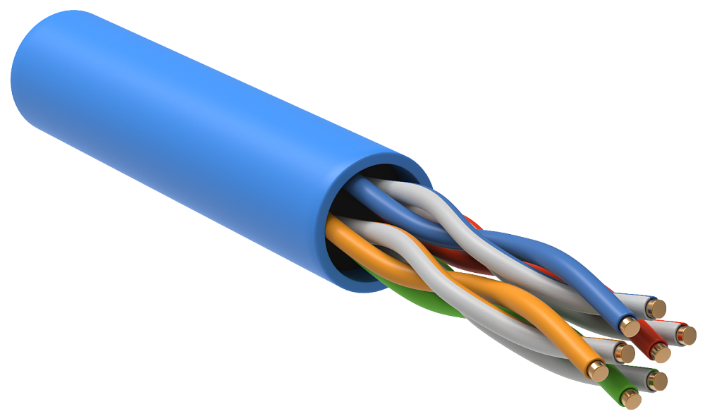 Кабель витая пара U/UTP, кат. 5e, 4х2х0.51мм, 24AWG, внутренний, одножильный, PVC, внешний диаметр кабеля 5.2 мм, -20°C ...+60°C, синий, 305м.
