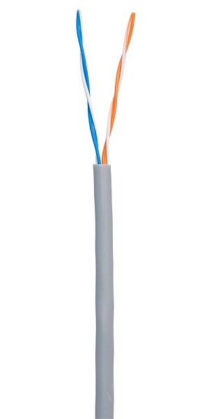 Кабель медный U/UTP, cat 5е, 2х2х0,47, для внутренней прокладки, оболочка серого цвета, внешний диаметр 4,1 мм, диапазон рабочих температур -20 ...+60°С, температура монтажа не ниже 0°С