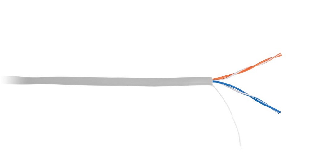 Кабель медный U/UTP, кат. 5, 2х2х0.45, для внутренней прокладки, PVC оболочка нг(B), цвет серый, внешний диаметр 4.2 мм, бухта 500м.