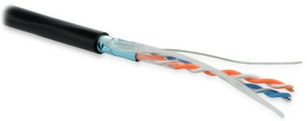 Кабель витая пара, F/UTP, кат. 5, 2x2x0.51 (24 AWG), одножильный (solid), экран, с дренажным проводом, PE, -40°C - +60°C, цвет черный, 500 м.