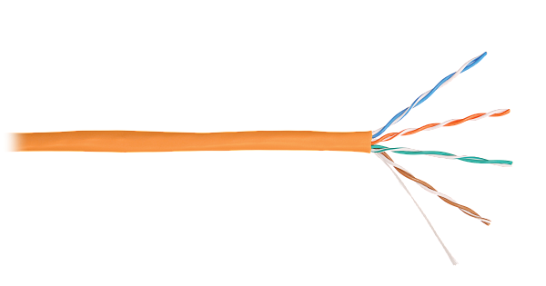Кабель медный U/UTP, cat 5e, 4х2х0.49, для внутренней прокладки, оболочка LSZH нг(А)-HFLTx, цвет оранжевый, внешний диаметр 5,2 мм, диапазон рабочих температур -20...+60°С, температура монтажа не ниже -0°С.