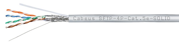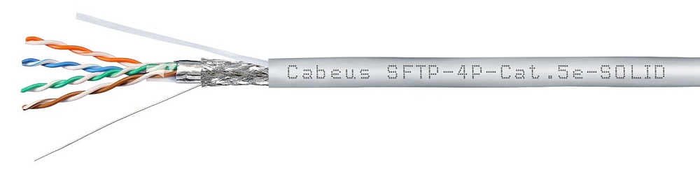 Кабель витая пара S/FTP, категория 5e, 4х2х0.50; экран, внутренний; одножильный, PVC нг(А)-LS, -20°C ...+60°C, серый, 305м.