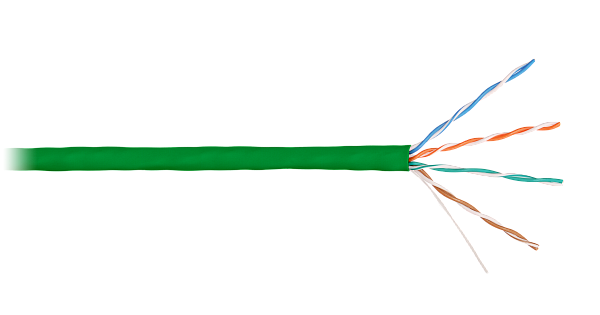 Кабель витая пара неэкранированный NIKOLAN U/UTP 4 пары, Кат.5e (Класс D), одножильный, медный, 24AWG (0,50мм), внутренний, LSZH нг(А)-HFLTx, зеленый, 305м.