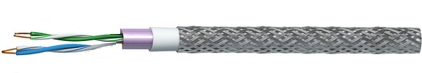 Кабель симметричный для структурированных кабельных систем (F/UTP) категории 5e, групповой прокладки, с пониженным дымо- и газовыделением, бронированный, количество пар: 2, диаметр жил: 0,52 мм, наружный размер 8,2 мм, жилы: однопроволочные медные, изоляция: сплошной полиэтилен, скрутка: парная, экран: общий из алюмолавсановой ленты с контактным проводником из медной луженой проволоки, оболочка: ПВХ пониженной пожарной опасности, с низким дымо- и газовыделением, броня: оплетка из стальных оцинкованных проволок, цвет серый