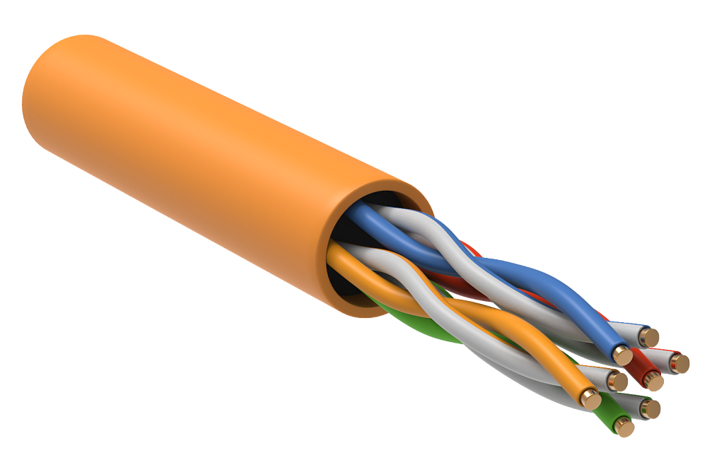 Кабель витая пара U/UTP, кат. 5e, 4х2х0.51мм, 24AWG, внутренний, одножильный, LSZH нг(A)-HF,внешний диаметр кабеля 5.2мм, -20°C ...+60°C, оранжевый, 305м.