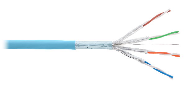 Кабель медный F/FTP, cat 6а, 4х2х0.56, экранированный для внутренней прокладки, оболочка LSZH нг(А)-HFLTx, цвет голубой, внешний диаметр 7,3 мм, диапазон рабочих температур -20...+60°С, температура монтажа не ниже -0°С.