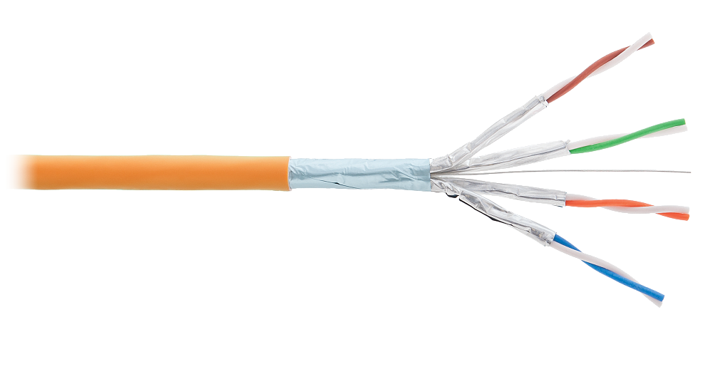 Кабель NIKOLAN F/FTP 4 пары, Кат.6a (Класс Eа), тест по ISO/IEC, 500МГц, одножильный, BC (чистая медь), 23AWG (0,56мм), внутренний, LSZH нг(А)-HFLTx, оранжевый, 500м - гарантия: 5 лет / 15 лет системная