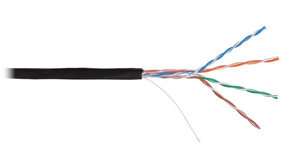 Кабель витая пара н/э NIKOLAN U/UTP 4 пары, Кат.5e (Класс D), одножильный, медный, 24AWG (0,50мм), внешний, PE до -60С, черный, 305м.