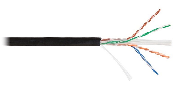 Кабель витая пара н/э NIKOLAN U/UTP 4 пары, Кат.6 (Класс E), одножильный, медный, 23AWG (0,57мм), внешний, PE до -60С, черный, 305м.