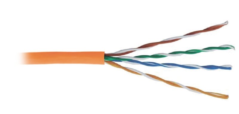 Кабель медный U/UTP, cat 5е, 4х2х0.51, для внутренней прокладки, оболочка LSZH нг(A)-HF, оранжевого цвета, внешний диаметр 5,7 мм, диапазон рабочих температур -20...+60°С, температура монтажа не ниже -5°С.