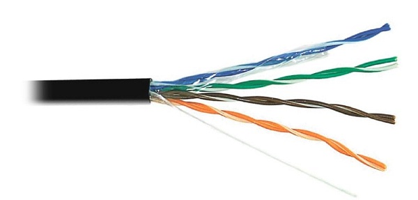 Кабель медный U/UTP, cat 5е, 4х2х0.51, для внешней прокладки, оболочка PE черного цвета, внешний диаметр 5,7 мм, диапазон рабочих температур -60...+60°С, температура монтажа не ниже -5°С.