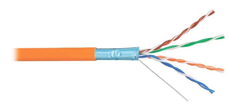 Кабель медный F/UTP, cat 5е, 4х2х0.51, экранированный для внутренней прокладки, оболочка оранжевого цвета, LSZH нг(A)-HF, внешний диаметр 6,4 мм, диапазон рабочих температур -20...+60°С, температура монтажа не ниже -5°С.