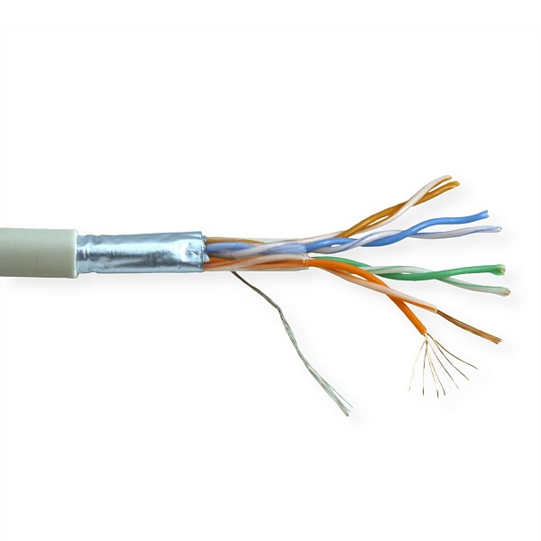 Кабель витая пара FTP экранированная, омедненный, многожильный, кат 5е 4х2х0.53 для внутренней прокладки, PVC, серый, материал проводника CCA, бухта 100м.