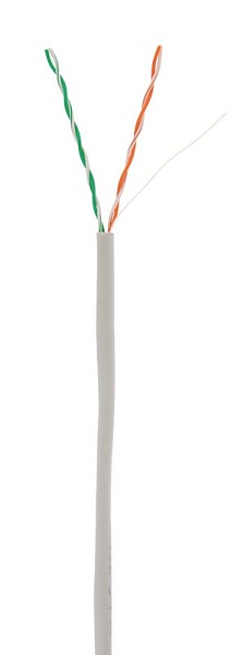 Кабель медный U/UTP, cat 5, 2х2х0.45, для внутренней прокладки, PVC оболочка нг(B), цвет серый, внешний диаметр 4.2 мм, диапазон рабочих температур -20 ...+60°С, температура монтажа не ниже 0°С.