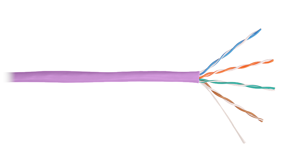 Кабель медный U/UTP, cat 5e, 4х2х0.51, для внутренней прокладки, оболочка LSZH нг(А)-HFLTx, цвет фиолетовый, внешний диаметр 5,2 мм, диапазон рабочих температур -20...+60°С, температура монтажа не ниже -0°С.