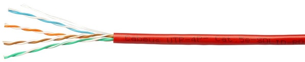 Кабель витая пара U/UTP, категория 5e, 4х2х0.50; внутренний; одножильный, PVC, нг(А)-LS, -20°C ...+60°C, красный, 305м.