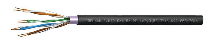 Кабель симметричный (витая пара), одиночной прокладки, cat 5e, 4х2х0.52, экранированный для внешней прокладки, оболочка PE, цвет черный, внешний диаметр 8,1 мм, -60...+80°С
