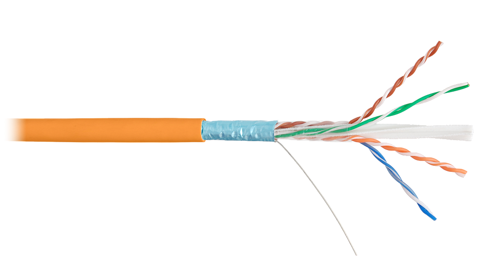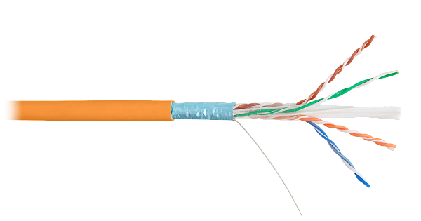 Кабель медный F/UTP, cat 6, 4х2х0.57, экранированный для внутренней прокладки, оболочка нг(А) PVC, цвет оранжевый, внешний диаметр 7.4 мм, диапазон рабочих температур -20...+60°С, температура монтажа не ниже -0°С.