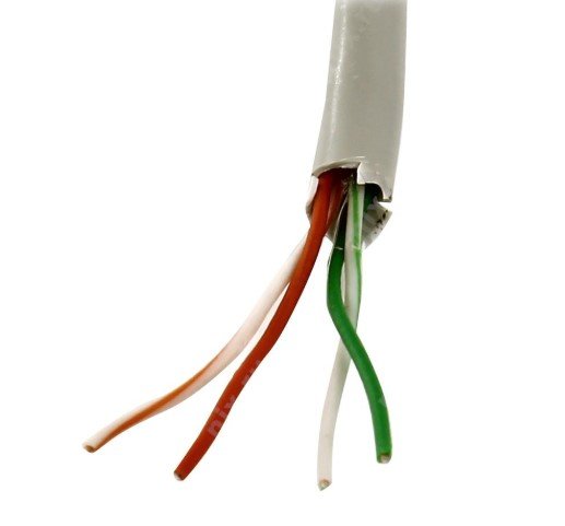 Кабель витая пара, неэкранированная U/UTP, категория 5e, 2 пары (24 AWG) 0,50 мм, для внутренней прокладки, одножильный (solid), Омедненный алюминий (CCA), PVC, -20°C – +75°C, серый (100 м).