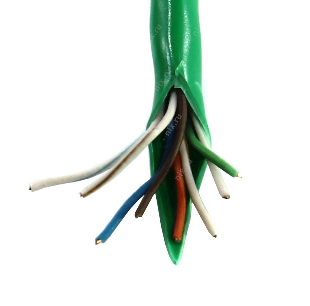 Кабель UTP (витая пара), омедненный, одножильный, кат 5е 4х2х0.50 для внутренней прокладки, PVC, зеленый, бухта 305м.