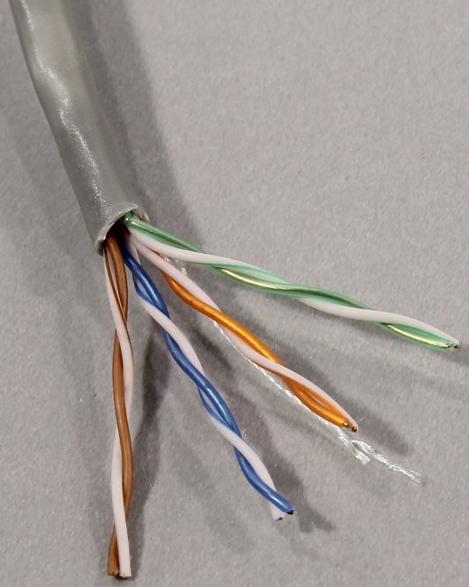 Кабель витая пара UTP кат 5е 4х2х0.5, одножильный, PE, для внутренней прокладки, 305 м; серый.