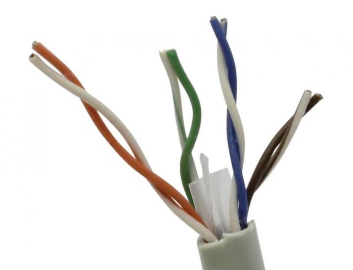 Кабель витая пара, неэкранированная U/UTP, категория 6, 4 пары (23 AWG) 057 мм, для внутренней прокладки, одножильный (solid), Омедненный алюминий (CCA), PVC, -20°C – +75°C, серый (100 м).