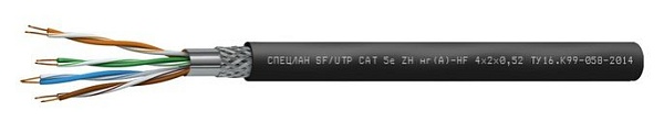 Кабель симметричный (витая пара), групповой прокладки, с пониженным дымо- и газовыделением, cat 5e, 2х2х0.52, экранированный для внешней прокладки, оболочка нг(А)-HF, цвет серый, внешний диаметр 7,6 мм, -60...+70°С