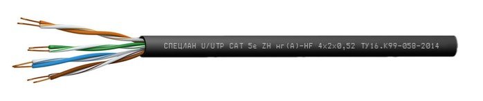 Кабель симметричный (витая пара), групповой прокладки, с пониженным дымо- и газовыделением, cat 5e, 4х2х0.52, оболочка нг(А)-HF не содержащая галогенов, цвет черный, внешний диаметр 7,9 мм, -60...+70°С,