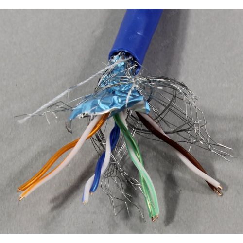 Кабель витая пара, экранированная SF/UTP, категория 5e, 4 пары (24 AWG) 0,51 мм, для внутренней прокладки, одножильный, медный, PVC, -20°C – +75°C, синий (305 м).