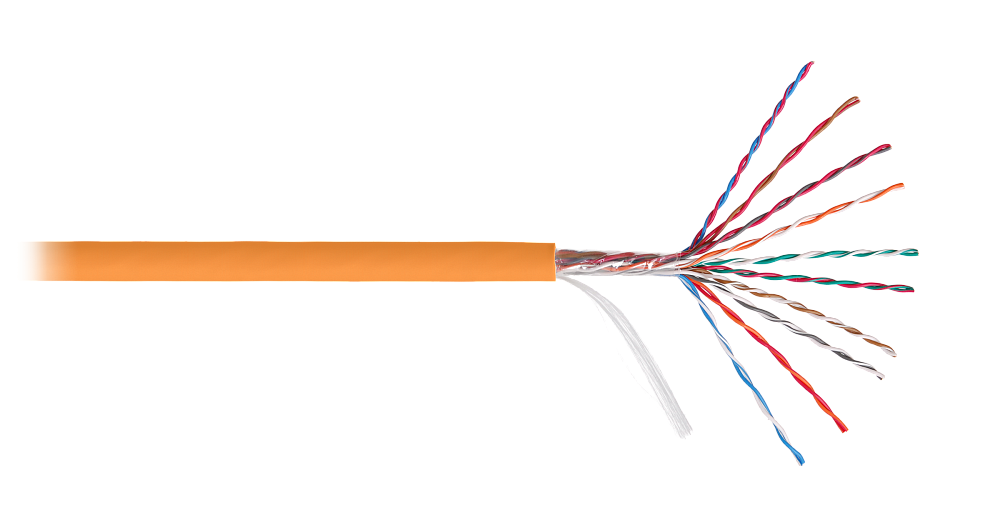 Кабель U/UTP 10 пар, Кат.5 (Класс D), 100МГц, одножильный, BC (чистая медь), 24AWG (0,50мм), внутренний/внешний, LSZH -40C нг(А)-HFLTx, оранжевый 500м.