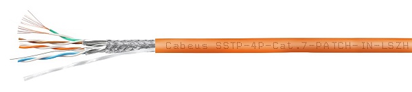 Кабель витая пара S/FTP, категория 7, 4х2х(7х0.16); экран, внутренний; многожильный, LSZH, нг(А)-HF, -20°C ...+60°C, оранжевый, 305м.
