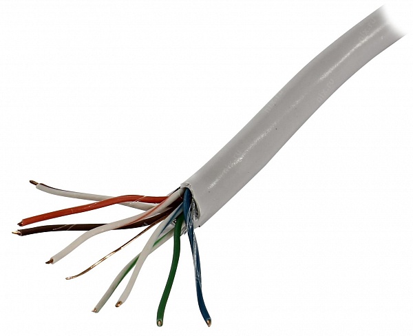 Кабель FTP (витая пара) c экраном, омедненный, одножильный, кат 5е 4х2х0.50 для внутренней прокладки, PVC, серый, бухта 100м.
