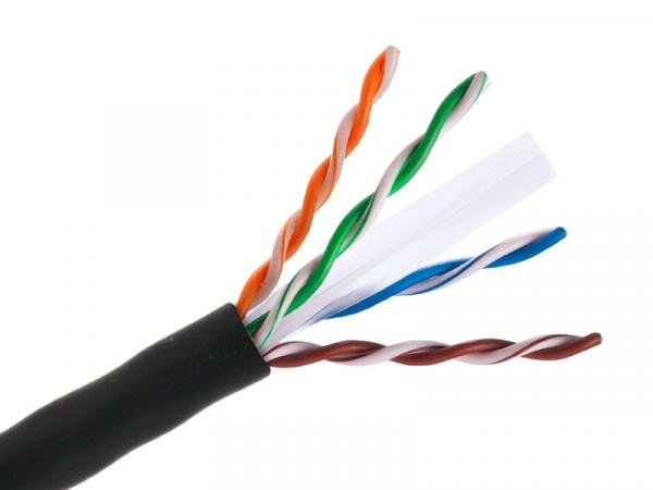 Кабель витая пара U/UTP, кат 6 4х2х0.55, 23AWG, медь, оболочка PЕ, цвет оболочки черный, диаметр кабеля 5.2, для внешней прокладки, температура монтажа не ниже -10°С, диапазон рабочих температур -40…+90°С, 305м.