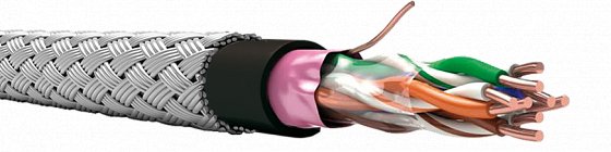 Кабель симметричный F/UTP, cat.5e, с однопроволочной медной жилой 0.52мм, 2 пары в экране из алюмолавсановой ленты с дренажным проводником; в броне из стальных оцинкованных проволок; в оболочке из безгалогеновой композиции (LSZH); t-раб.-60…+60°C. Черного цвета. Для внешней прокладки.