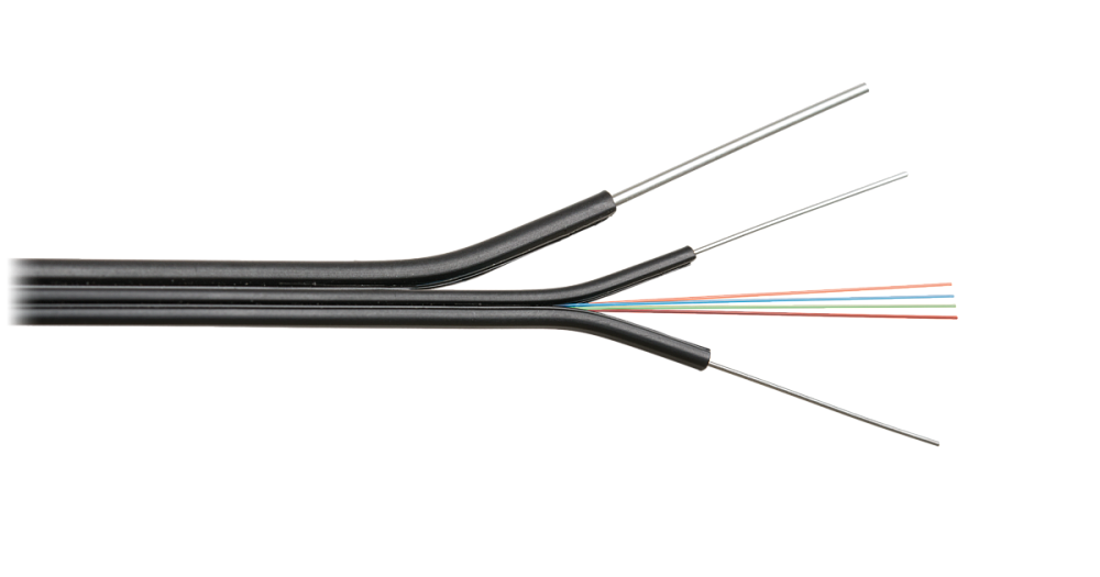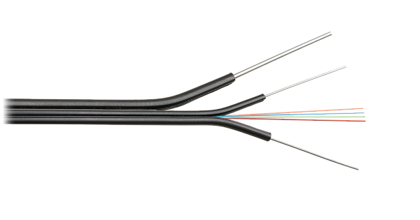 Кабель волоконно-оптический, 2 волокна, одномодовый 9/125мкм, стандарта G.657.A1/G.652.D, внутренний/внешний, бабочка со стальными прутками и тросом, LSZH -40C нг(A)-HFLTx, черный.