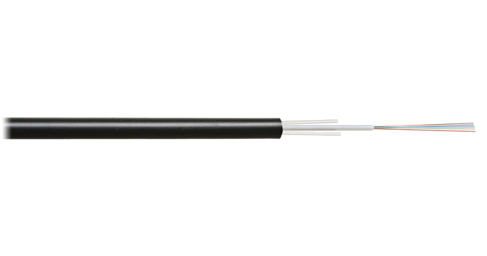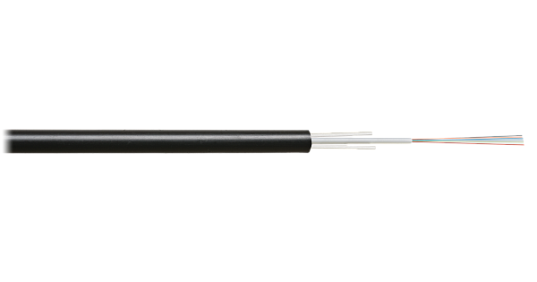 Кабель волоконно-оптический, 2 волокна, одномодовый 9/125мкм, стандарта G.652.D/G.657.A1, внешний, круглый со стеклопластиковыми прутками, 0.5кН, PE, черный.