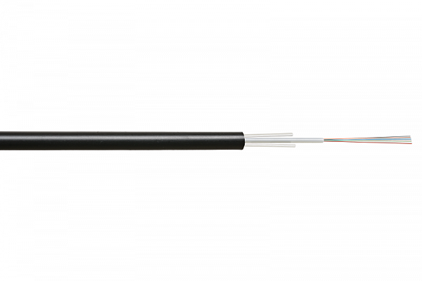 Кабель волоконно-оптический, 2 волокна, одномодовый 9/125мкм, стандарта G.652.D & G.657.A1, внешний, круглый со стеклопластиковыми прутками, 0.5кН, PE, черный.
