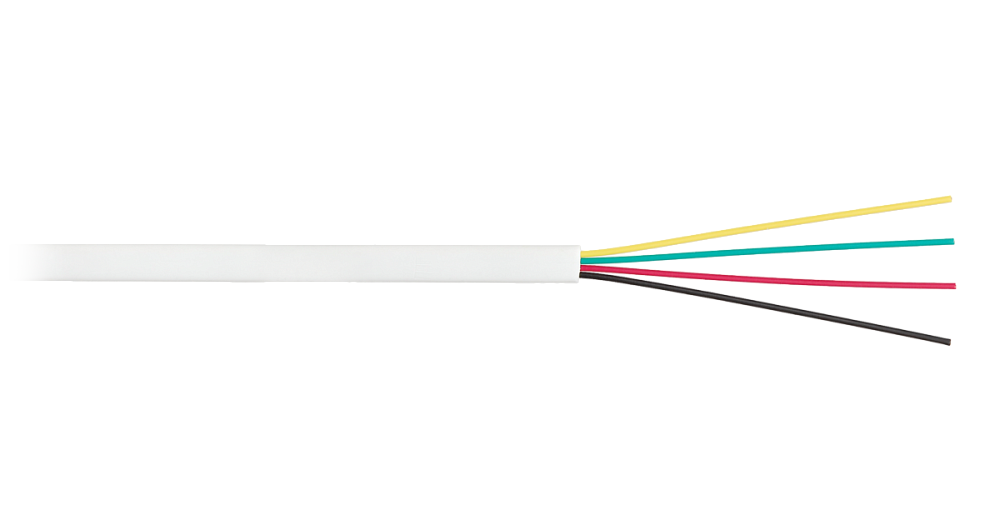 Кабель телефонный NIKOLAN, плоский, 4 проводника, многожильный, медный, 26AWG (7х0,16мм), внутренний, PVC, белый, 100м.
