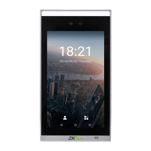 Терминал с идентификацией по лицу: распознавания лиц, Дисплей 7" TFT. Сдвоенная камера 2 MP. Память 2 ГБ RAM/16 ГБ ROM. Память шаблонов лиц 10 000. Память журнал событий 100 000. Интерфейсы: TCP/IP, 2хUSB, RS232, RS485 для внешних считывателей, Wiegand вход/выход. Входы/выходы: дверной замок, дверной датчик, звонок, кнопка выхода, тревога, AUX вход.