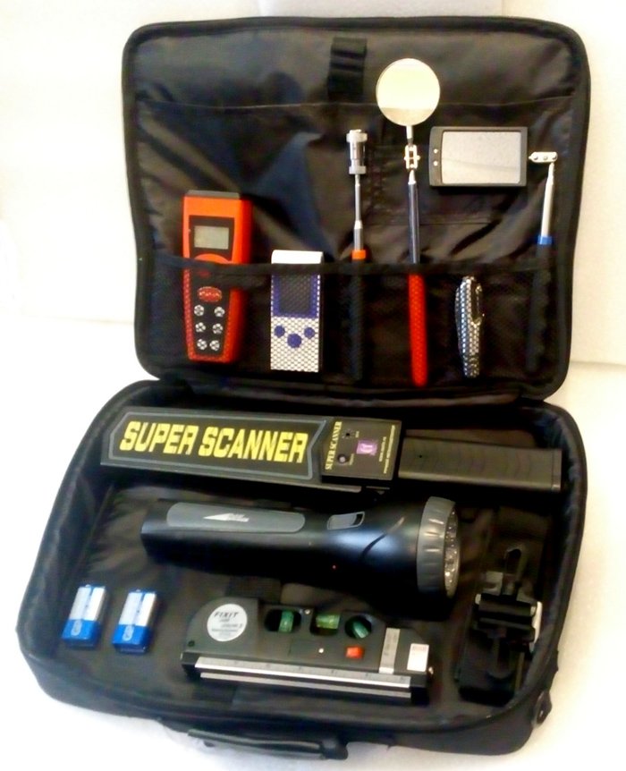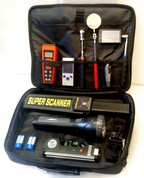 Комплект КОНДОР МАКСИ - Фонарь (11 светодиодов, 2 режима работы, зарядка от сети 220 В), Металлоискатель (звуковой и вибро режимы, поясной чехол в комплекте, питание Крона 9 В), Дозиметр (измерение уровня радиации и ее накопленную дозу с выводом результатов на цветной ЖК-дисплей в цифровом и графическом виде, высокоточный счетчик Гейгера-Мюллера профессионального типа, тревожный аудиосигнал при превышении заданного уровня излучения), Дальномер (ультразвуковое измерение, функция складывания и умножения полученных результатов, питание Крона 9 В), Зеркало телескопическое досмотровое с подсветкой (8х5 см, телескопическая штанга 28...87 см, крепление зеркала фиксируется под любым углом), Зеркало круглое (D5 см, телескопическая штанга 22...40 см, крепление зеркала фиксируется под любым углом), многофункциональных нож, телескопический магнит 22...80 см, лазерный уровень.